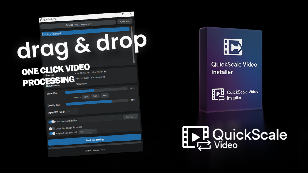 Hey there! π, I built QuickScale Video because I needed a super-fast, easy way to downscale huge video files and image sequences β and I bet you do too! π