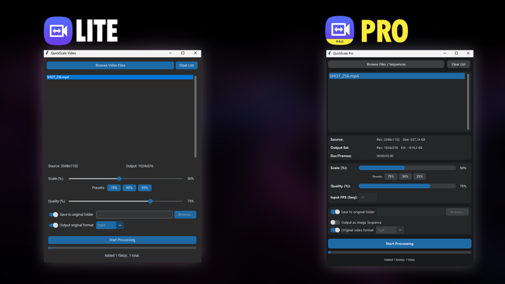 QuickScale Video Lite provides a reliable, streamlined solution for everyday video resizing and format conversion needs, without future updates.